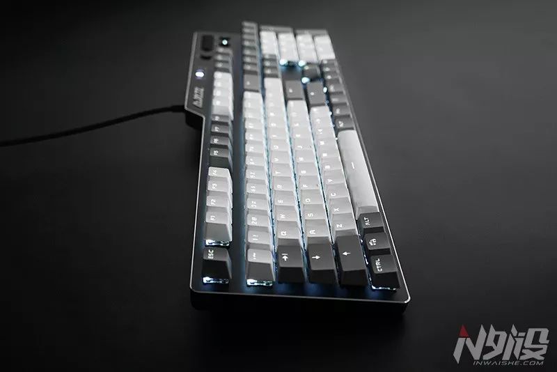键帽是PBT双色注塑的,表面有细腻的磨砂感-1-6。这东西的好处就是抗打油,像我这种“汗手”,以前用ABS键帽个把月就油光锃亮,现在用了小半年,这套键帽依然干爽。不过要注意,这套键帽是不透光的,虽然键盘是下灯位设计,有20种RGB灯效,但光线是从键帽缝隙中透出来的,是一种朦胧的氛围感,喜欢字符透光那种炸裂效果的玩家可能要自己换套键帽了-3-6。